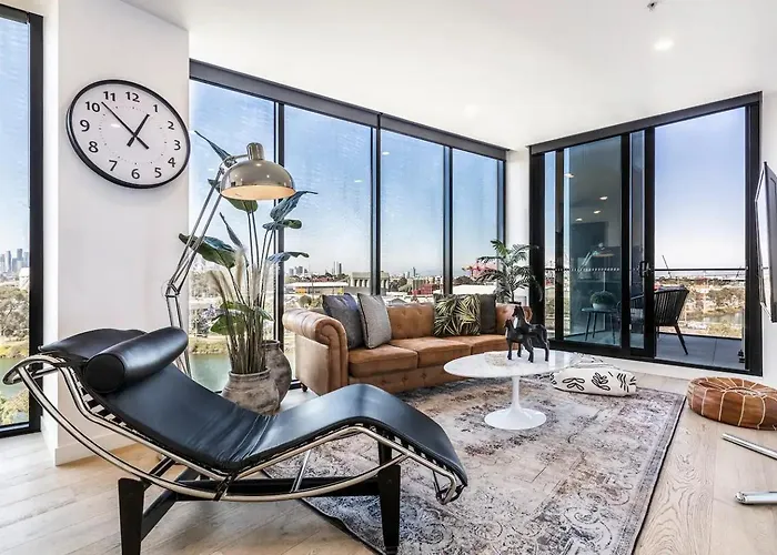 Das Hip Condo On Maribyrnong River Cityscape Views! bietet seinen Gästen einen Balkon sowie moderne Annehmlichkeiten wie eine Klimaanlage. Das Apartment bietet auch einen Flachbildfernseher mit Satellitenkanälen und wichtige Sicherheitseinrichtungen wie Rauchmelder. In der Unterkunft gibt es 1 Bad. Darüber hinaus gibt es im Badezimmer einen Haartrockner, einen Wäschetrockner und Handtücher.